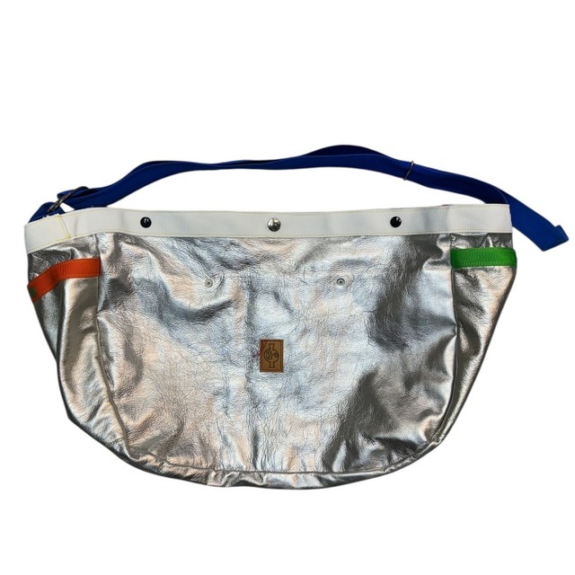gourmet jeans made in japan 色 シルバー レザー牛革 サイズ 幅64cm 奥行24cm 高さ39cm このジャンボショルダーは高知のBORSAが製作をしてます。 ひとつひとつレザーや素材や色が違っていて一つ一つショルダーの金具の形が違ったり、ロゴの配置が違ったりなど、完全一点物の商品になります! ワンオフのアイテムの魅力ですね! レザーの光沢感や、表面の赤ステッチがアクセント効いててグットです! ショルダー部分の金具はオリジナル製作の物を使用してます。ベルトやバックルで調節可能。 個人的には絞った位置から付け根にかけてのこのラインがたまらなく好きです! 外側の両端にはクンバのスプレー2本、すっぽり入るくらいのポケットがついてます!! 開け閉めもジップではなくスナップになっていて、真ん中のスナップはドイツのホック社のスナップを使用!オープンカーの車の帆やヨットの帆に使われてるのと同じものなので頑丈で外れにくいです! 付け根の金具は、○型がアンティークを使用。 こちらもめちゃくちゃ頑丈ですね! 内側にはポケットが付いていてノートパソコンが入るくらいの大きなポケットと小さいポケットが3つ!小分けして収納できます! そしてこのバックの最大の魅力は名前の通りのこのサイズ感! ヘビーアウター、スウェット、靴がすっぽり入るのが魅力です! こいつ一個で旅行にいけちゃうくらいおっきいです!