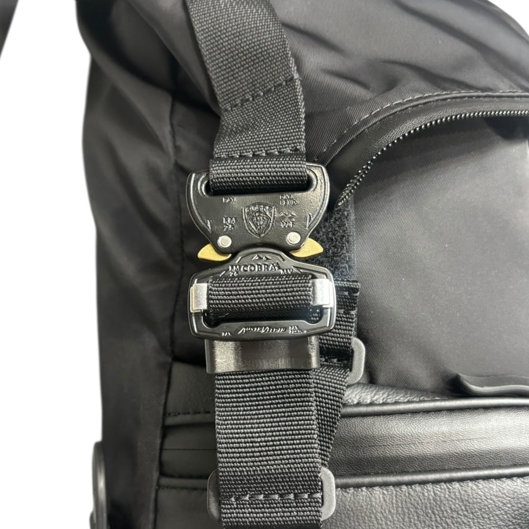 荷物を入れるメインスペース自体を折り曲げることでフラップ(蓋)の役割をするバックパック。フラップを固定するのはbagjackならではのコブラバックルを採用。ワンタッチのクイックリリースで簡単に開閉可能でしっかりホールドされる機能的なバックルです。