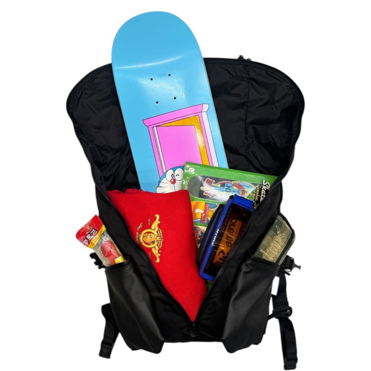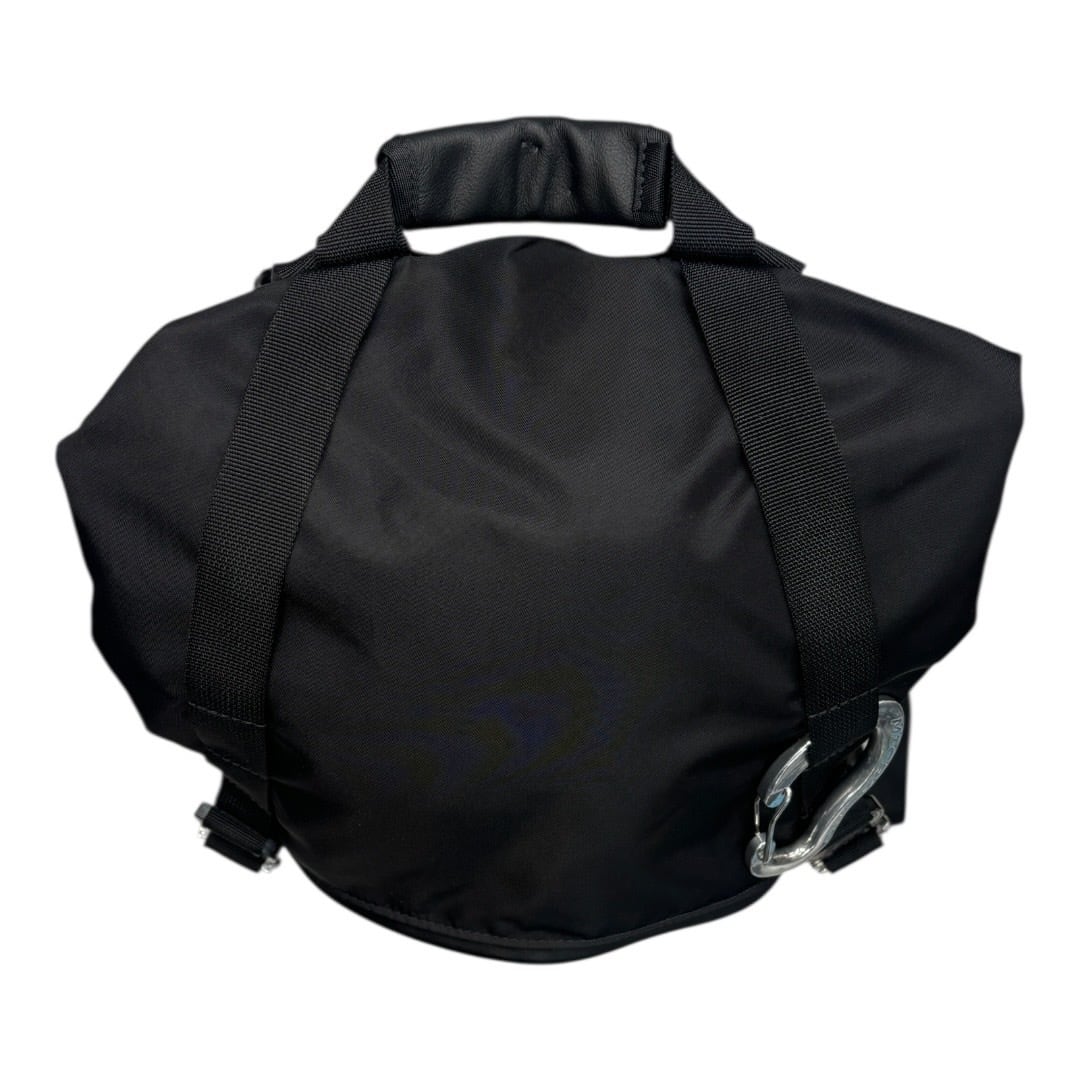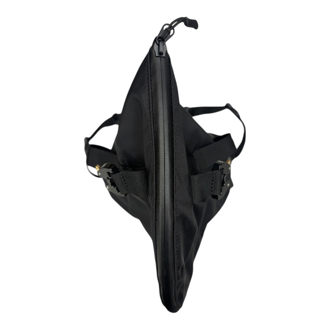 フラップを最大限伸ばすと、従来のバックでは収まりきれない、長い物や、筒状のものを持ち運ぶことが可能。