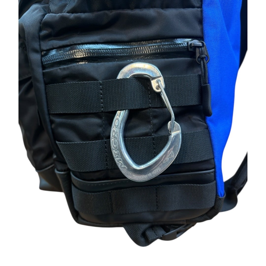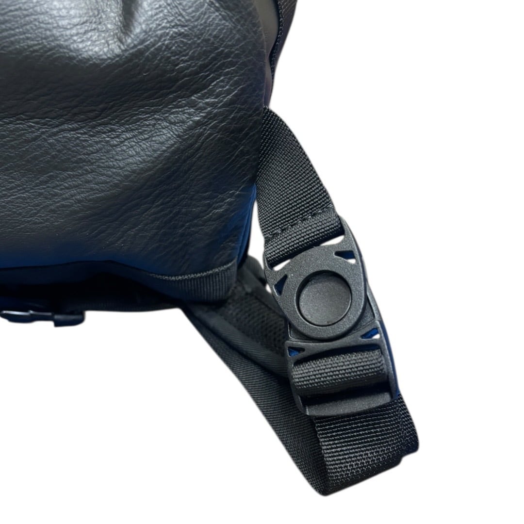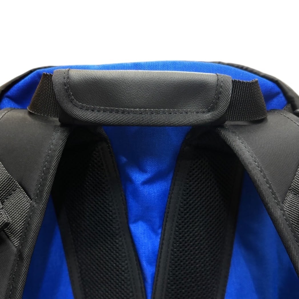 素材は表面はリモンタナイロンとレザーのコンビで背面はコーデュラナイロンの鮮やかなブルーにしました!!