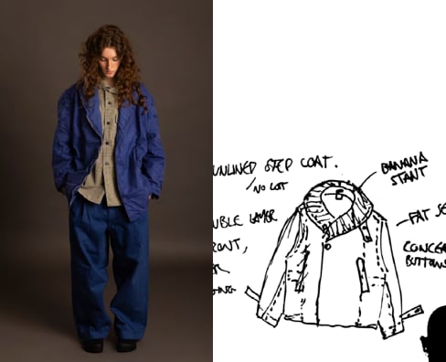 れらの参照元から対話や実験を経て、全く異なる文脈の服に変化していきます。生地の段階から縫製方法までを見直しながら、日常的に使える機能性と、アート作品のような再構築的なデザインを併せ持ったコレクションです。