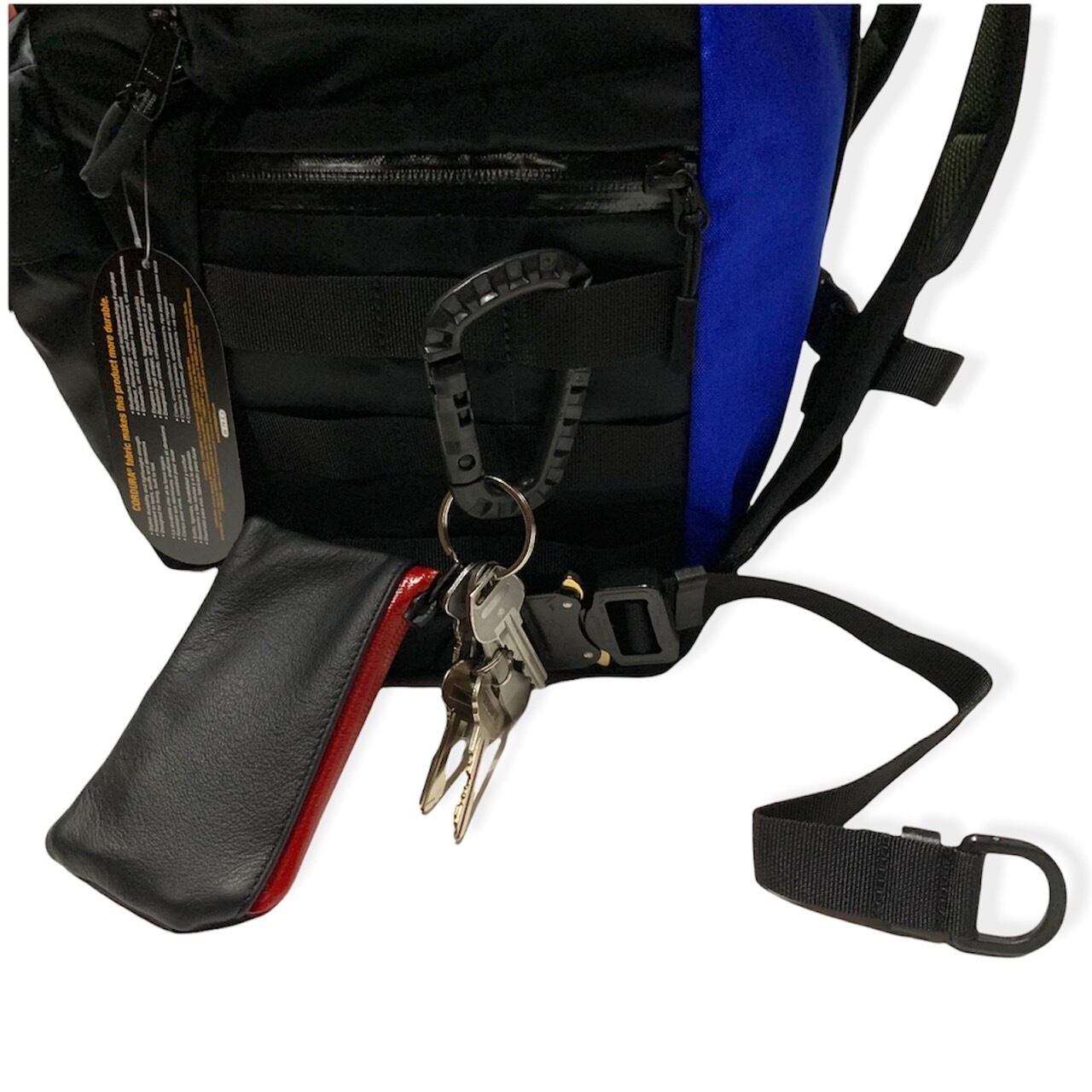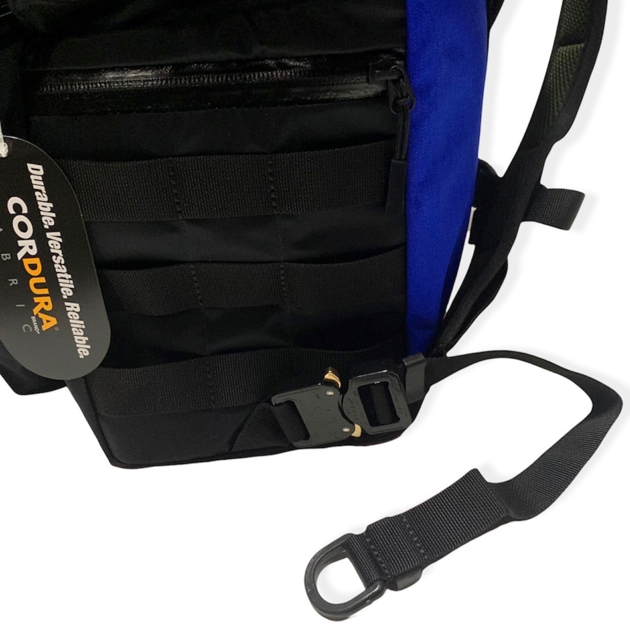 ストラップには強靭なコブラバックルをアサイン。サイドにはモールラックをつけてますので、タグはフロントのポケット脇に縦長のタグを配置しました。