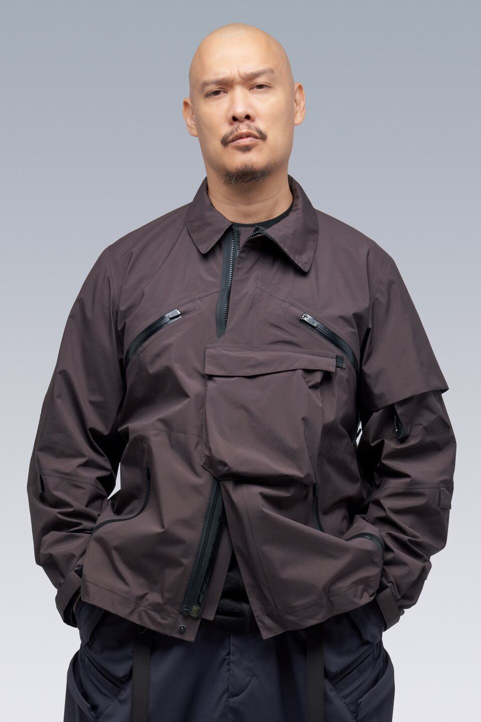 ePTFE コーティング加工ナイロン タフタのパネル仕立て長袖ジャケット。カラーはグレー。