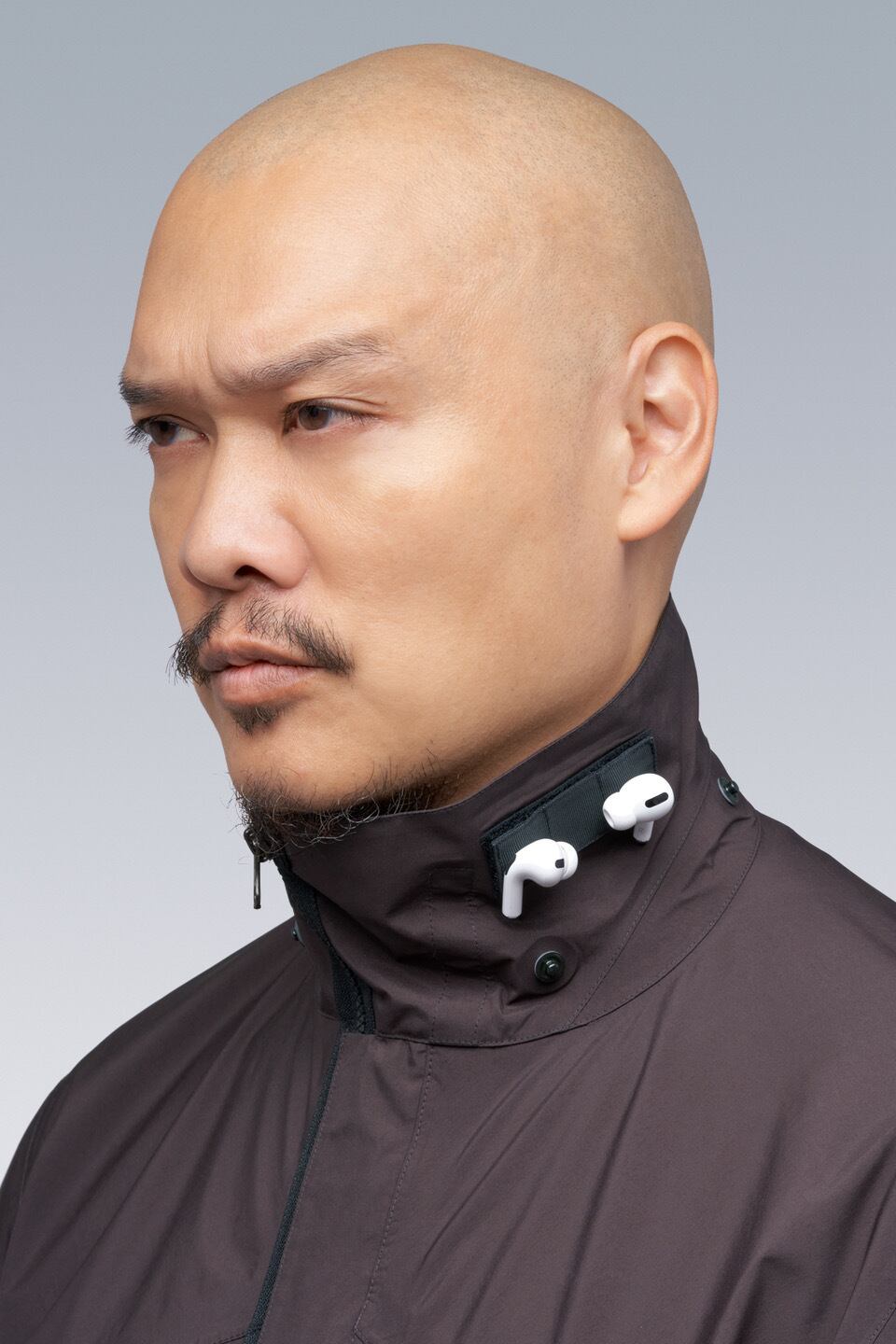 ePTFE コーティング加工ナイロン タフタのパネル仕立て長袖ジャケット。カラーはグレー。