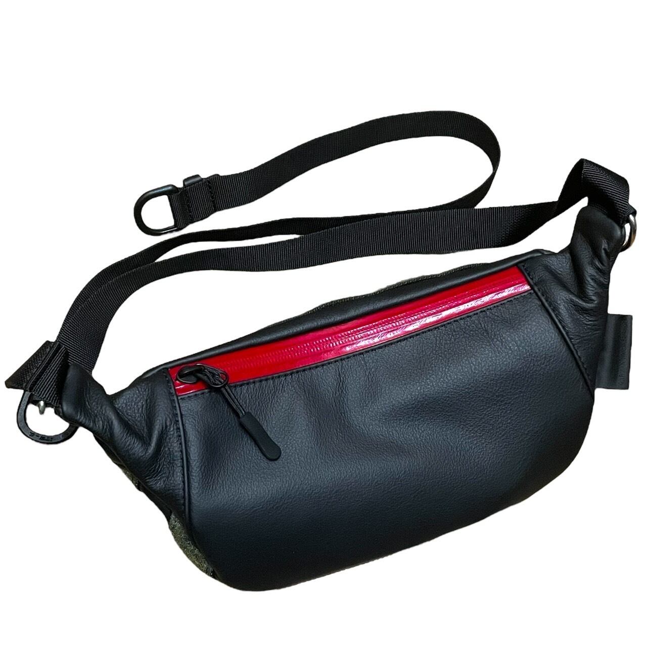 - しぼ感のある上質なレザーを使用したヒップバッグ